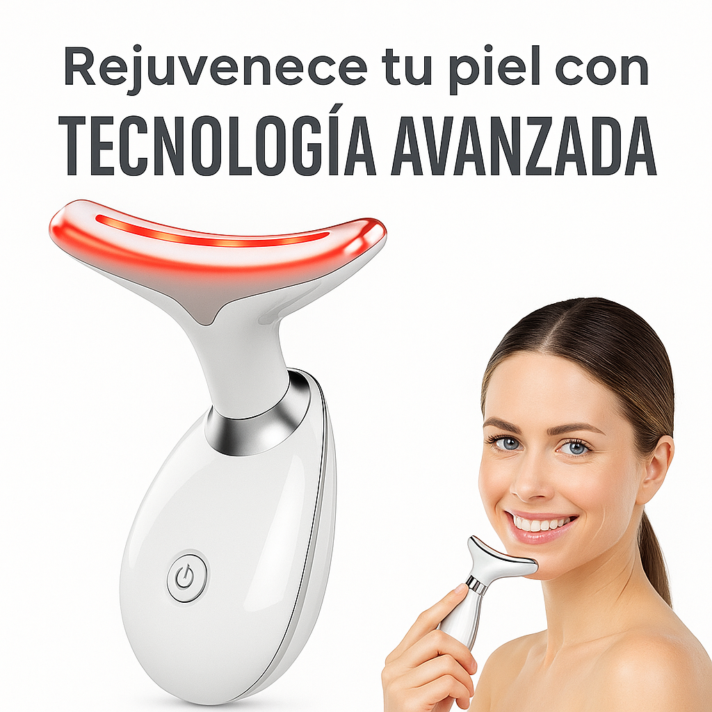 Masajeador Facial Reductor de Arrugas y Papada es un dispositivo profesional con 3 luces LED terapéuticas y vibración (roja, azul y verde), diseñado para rejuvenecer, tensar y activar la elasticidad natural de tu piel.